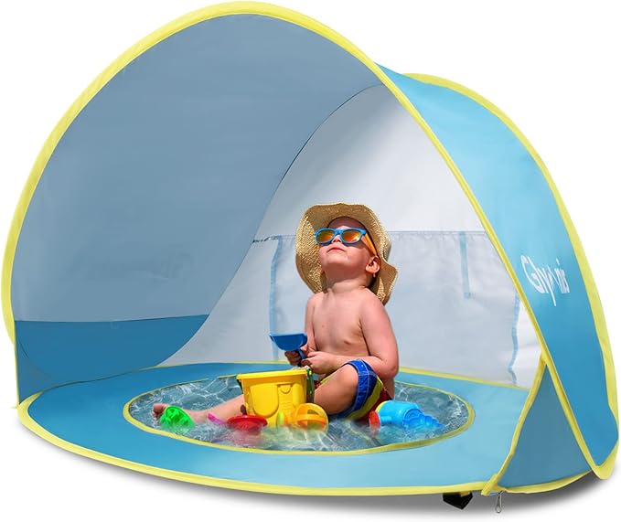 ​​Glymnis Tienda Playa Bebe Pop up Tienda de Bebé con Piscina para Infantil Carpa Plegable Portátil Protección Sol Anti UV 50+ Ventilación 120 * 80 * 70cm​​